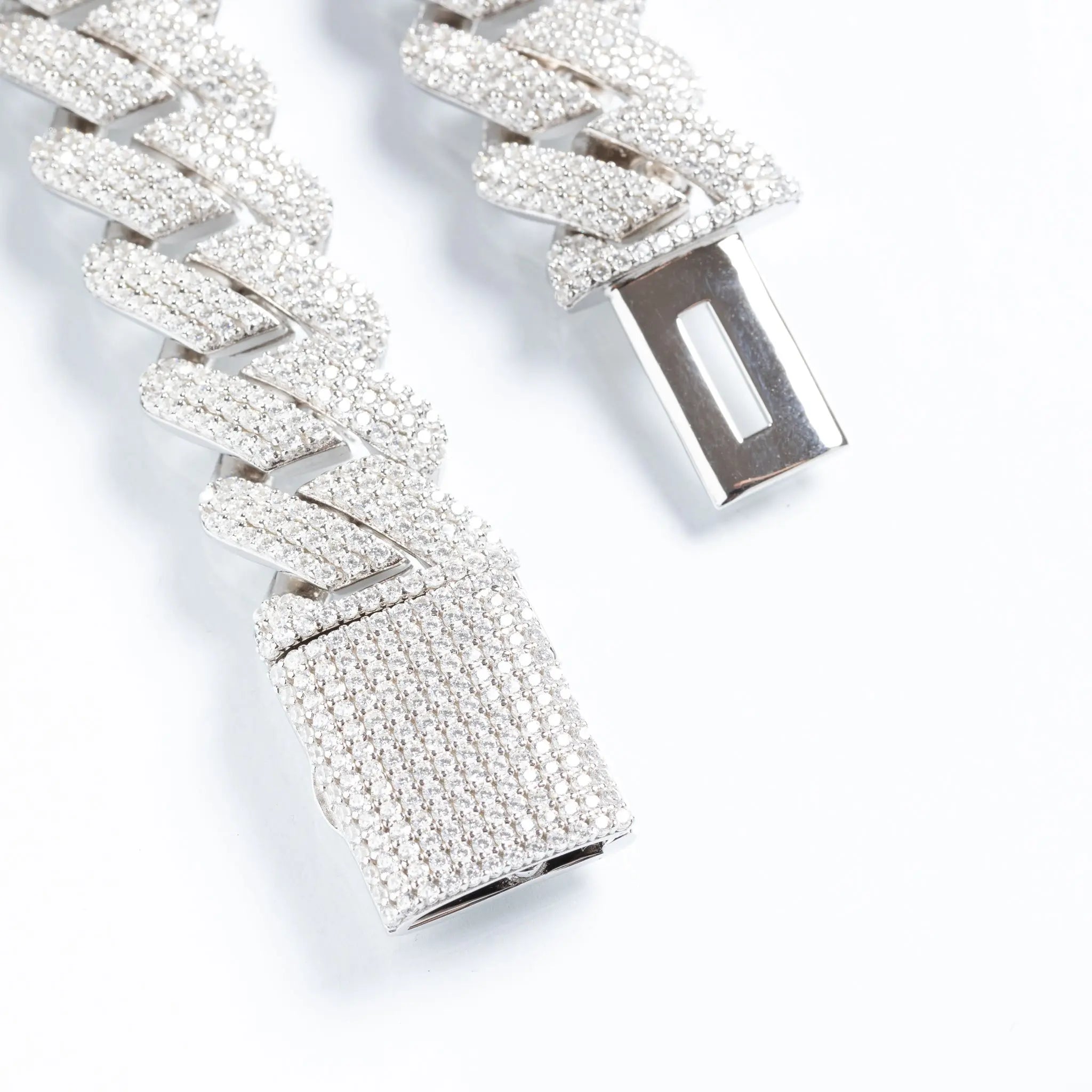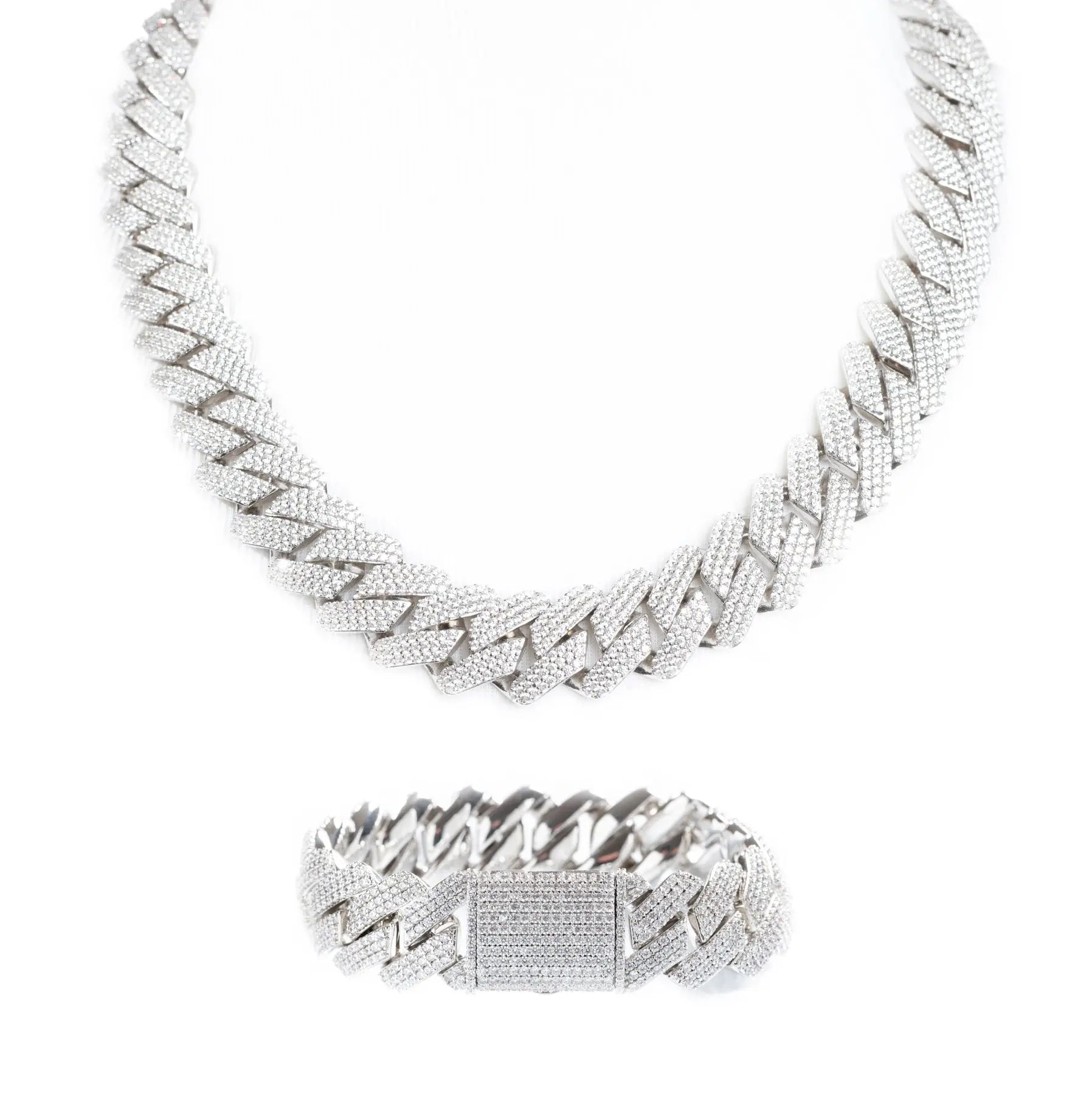 19mm Iced Prong Cuban Chain + Bracelet - White Gold