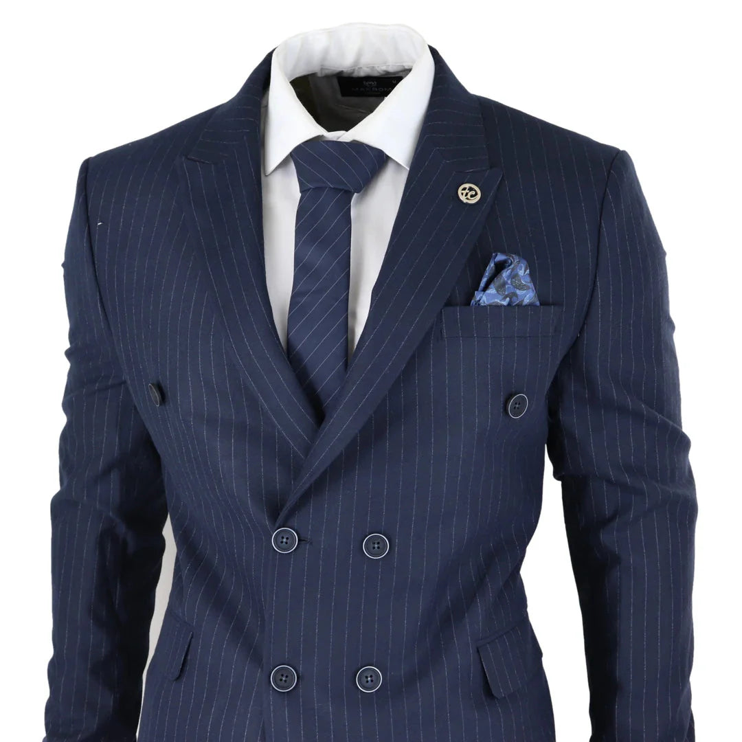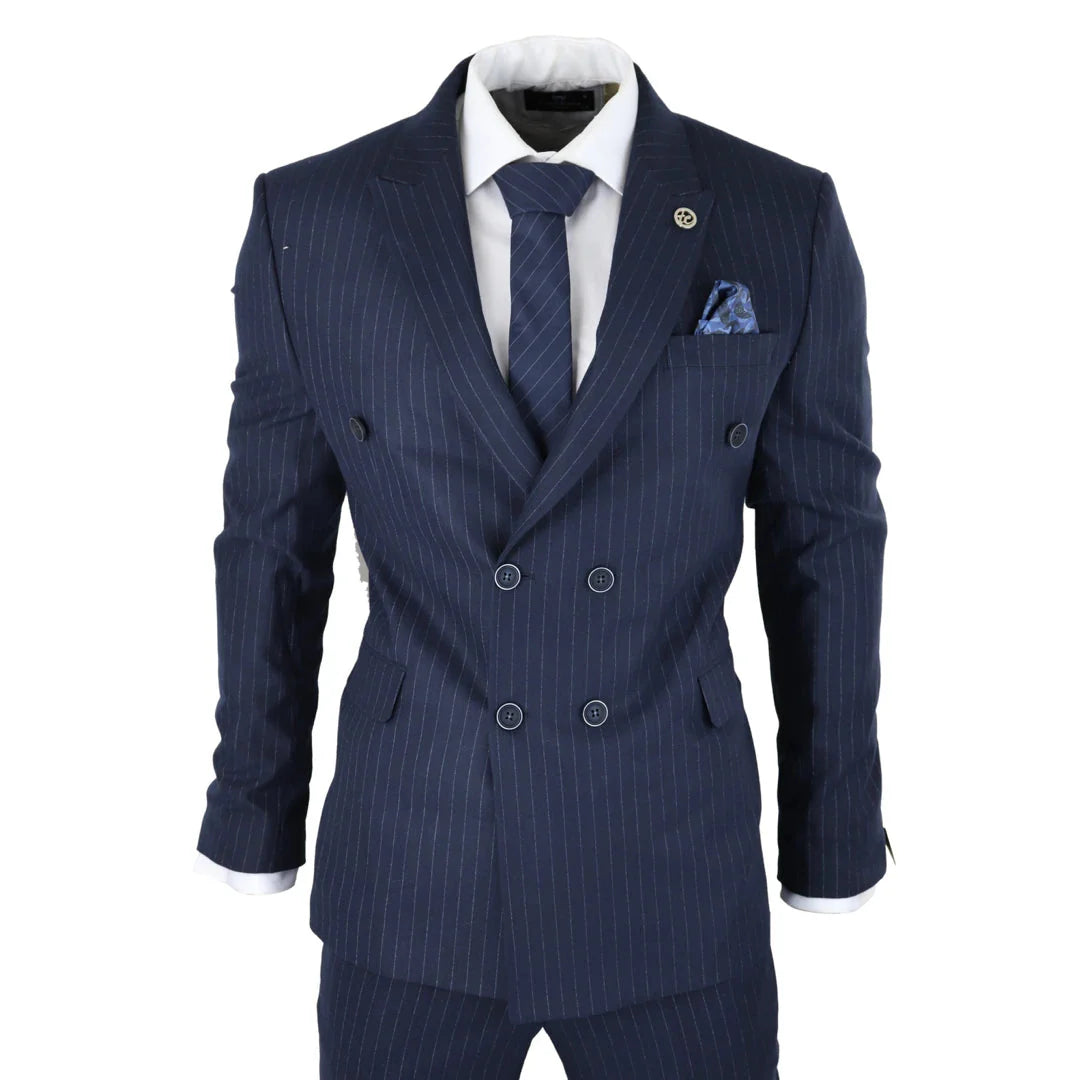 AK-16 - Men's Double Breasted Suit Navy Pinstripe 1920s Gangster Blinders Wedding
