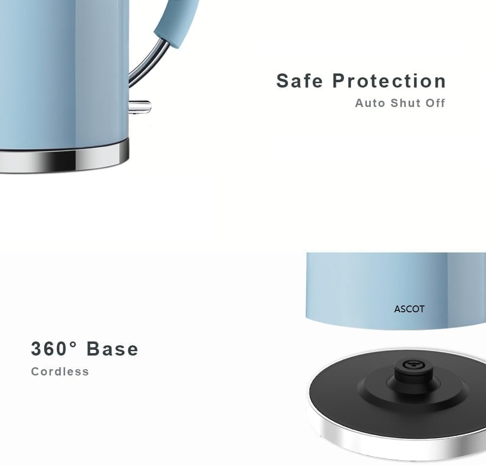 ASCOT Electric Kettle, Stainless Steel Electric Tea Kettle Gifts for Men/Women/Family 1.5L Retro Tea Heater & Hot Water Boiler, Auto Shut-Off Boil-Dry