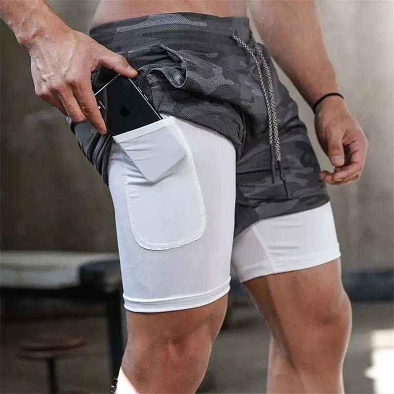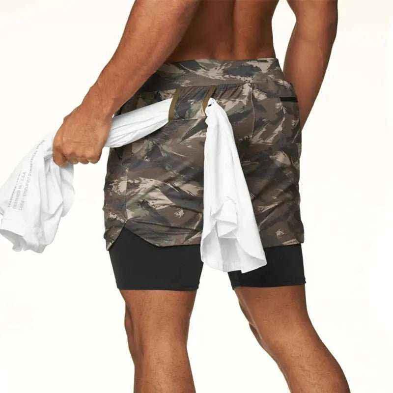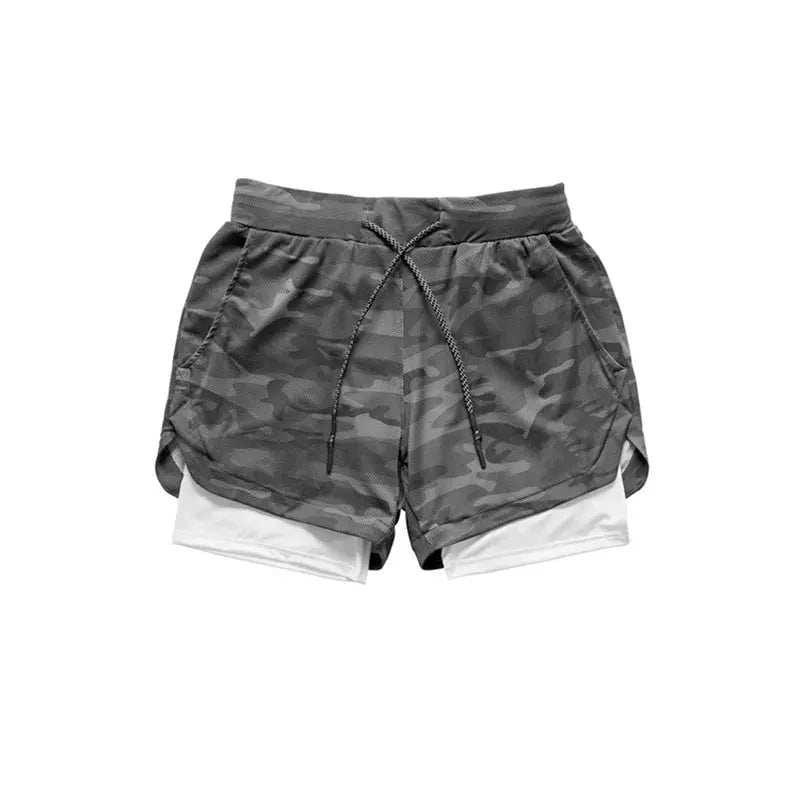 Camo Jogging Workout Shorts for Men - 2-in-1 Design, Quick Dry, Comfortable Fit