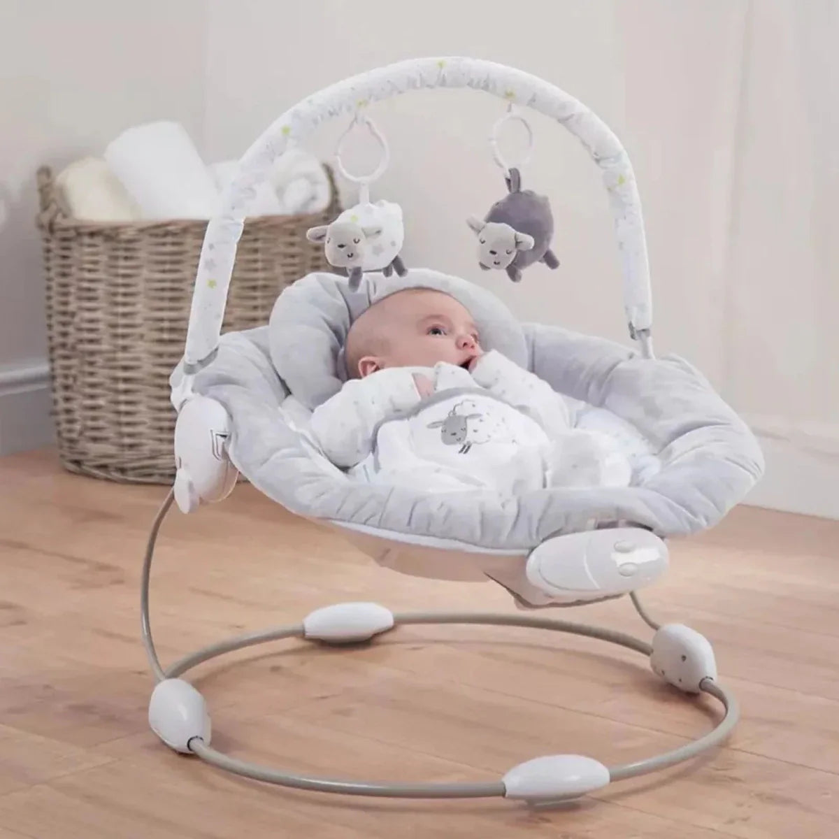 - 2 sleepy sheep toys: The bouncer comes with two cute and cuddly sleepy sheep toys that can help to soothe and entertain a baby.