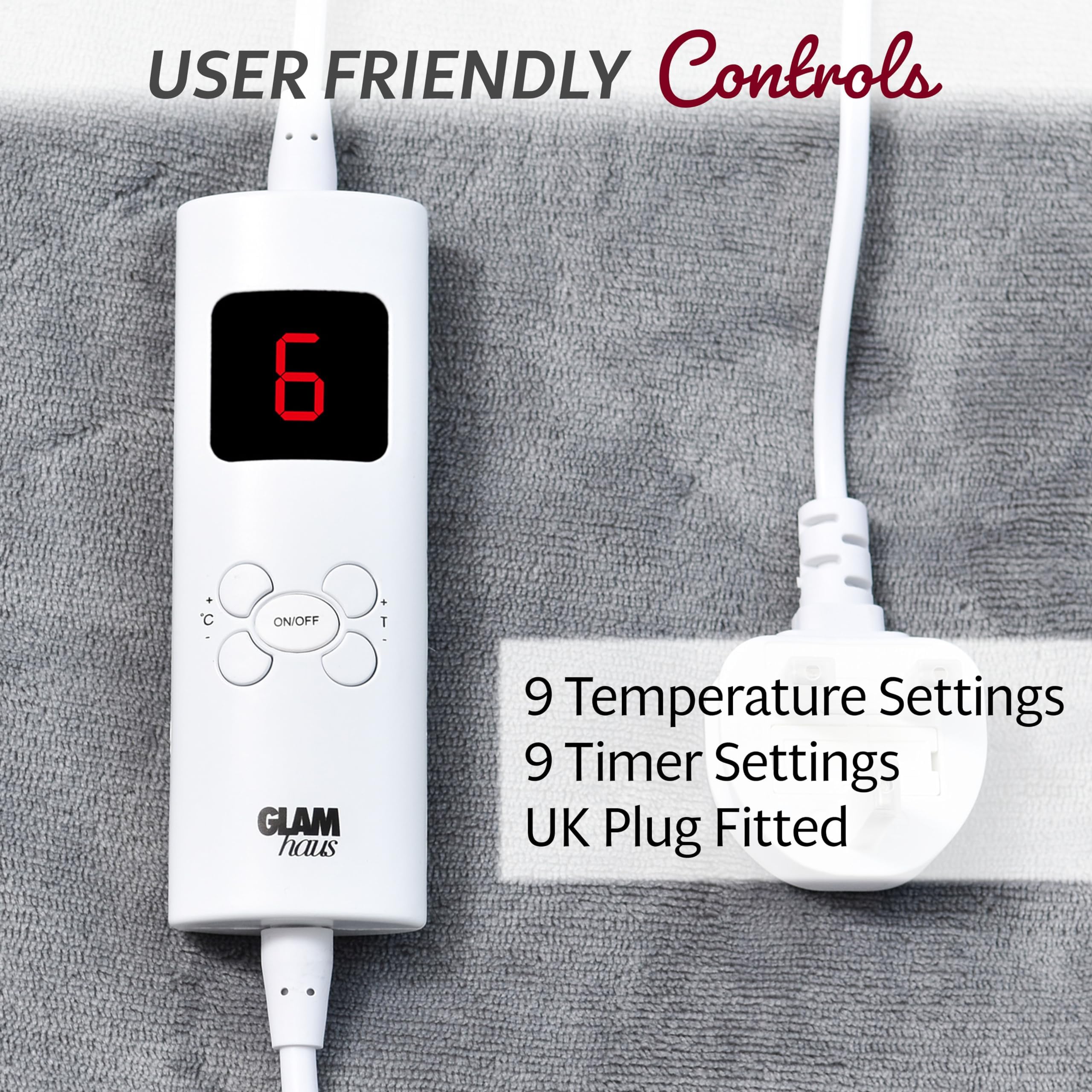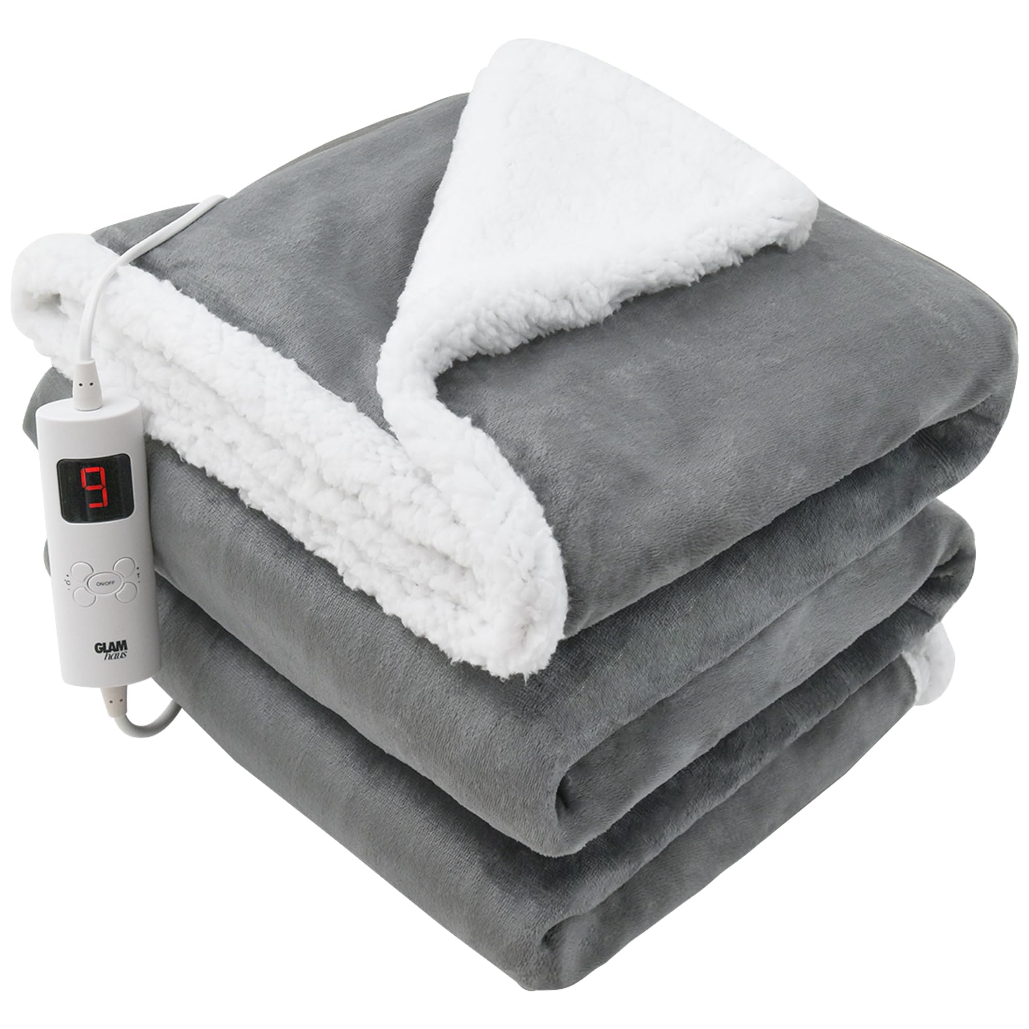 GlamHaus Heated Throw Electric Fleece Over Blanket Sofa Bed Large 160 X 130cm - 9 Heat and 9 Timer Auto Shut Off, Soft, Reversible Design, Digital