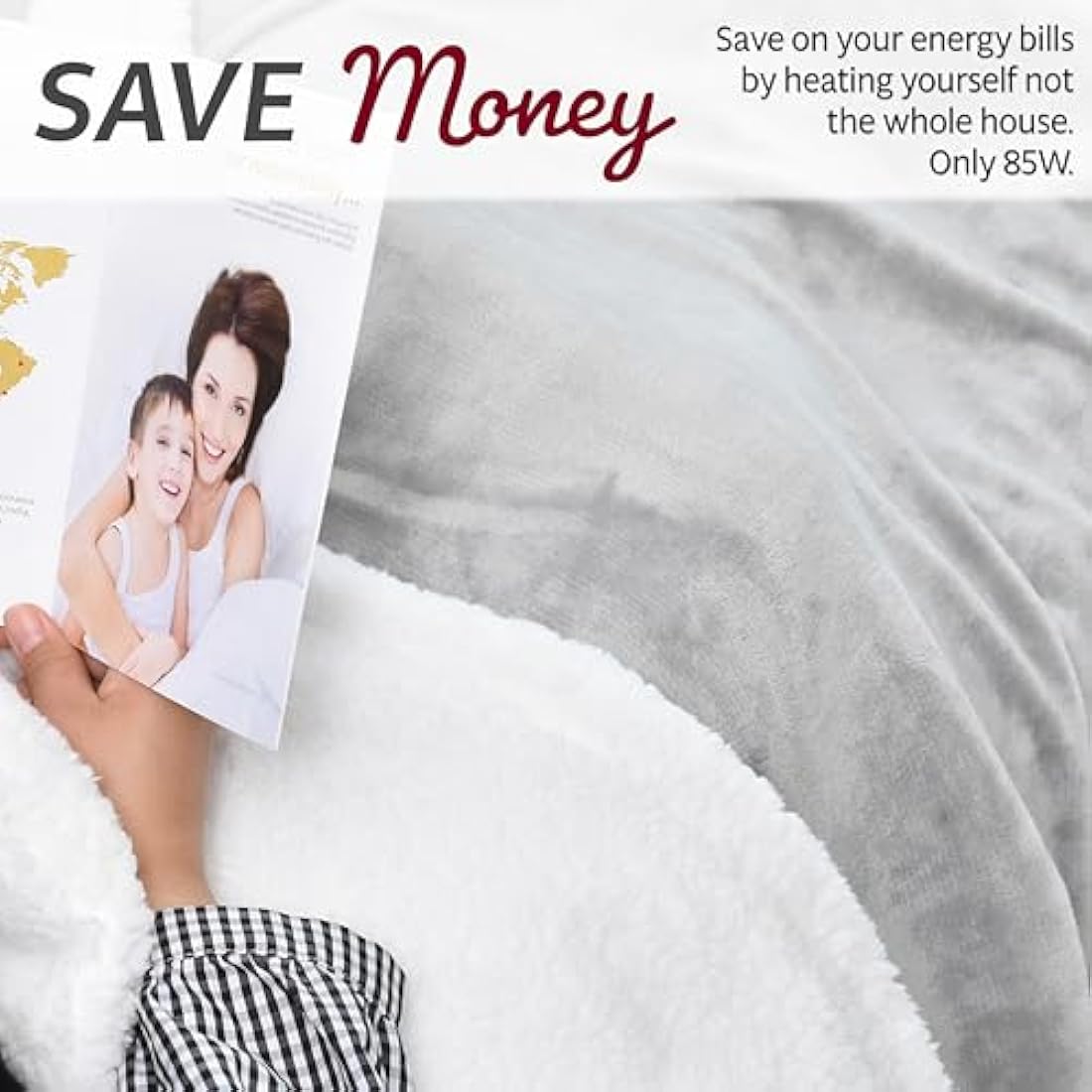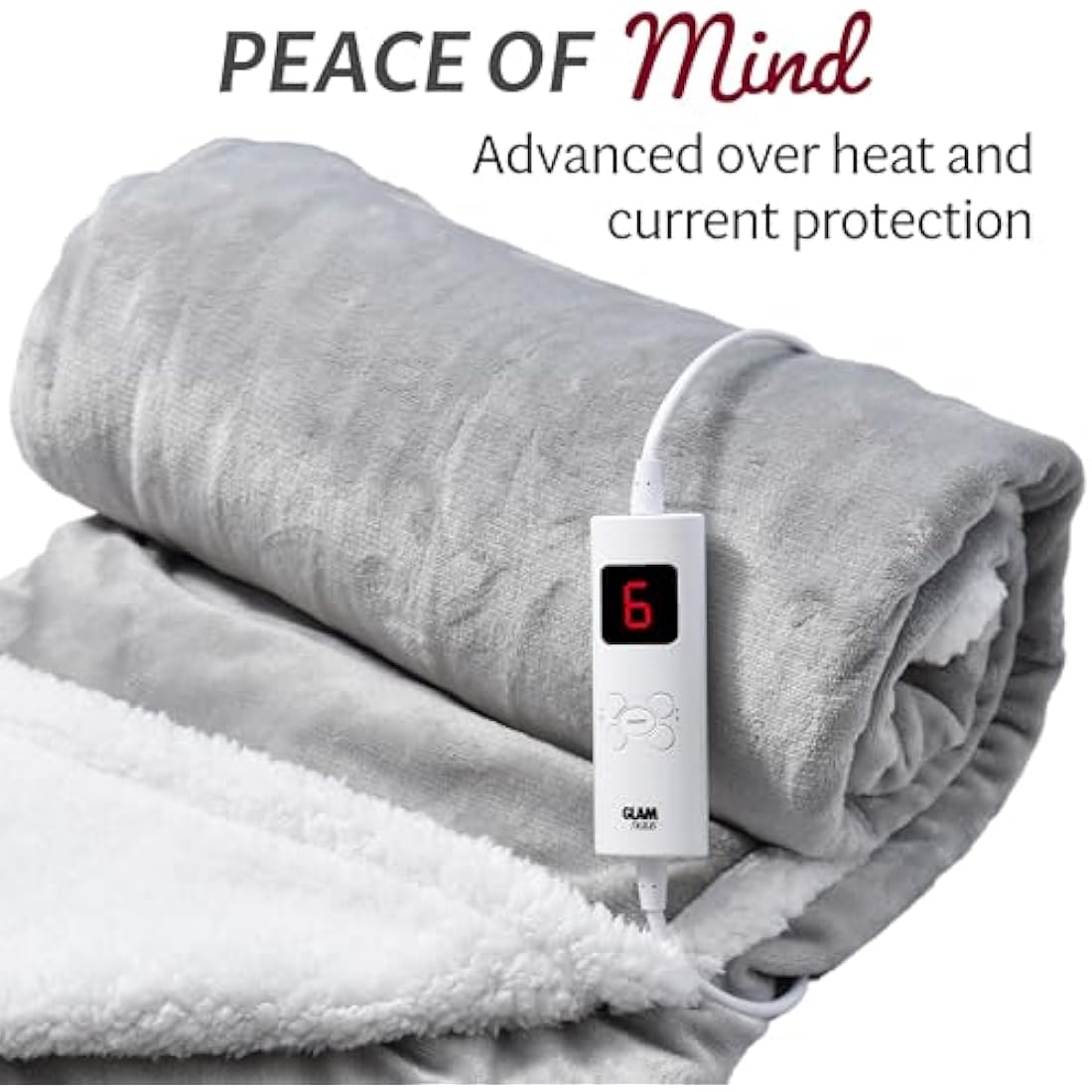 GlamHaus Heated Throw Electric Fleece Over Blanket Sofa Bed Large 160 X 130cm - 9 Heat and 9 Timer Auto Shut Off, Soft, Reversible Design, Digital Control, Machine Washable (Light Grey)