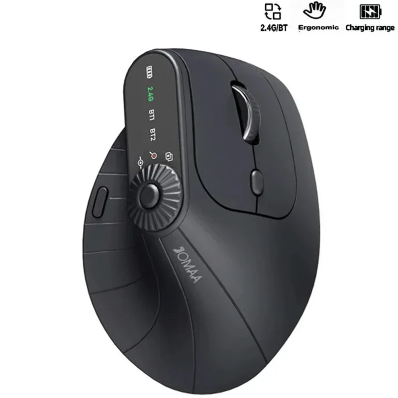 Ergonomic Vertical Wireless Mouse With Function Adjustment Knob Bluetooth 2.4G Dual Mode Wireless Rechargeable Mouse for Desktop