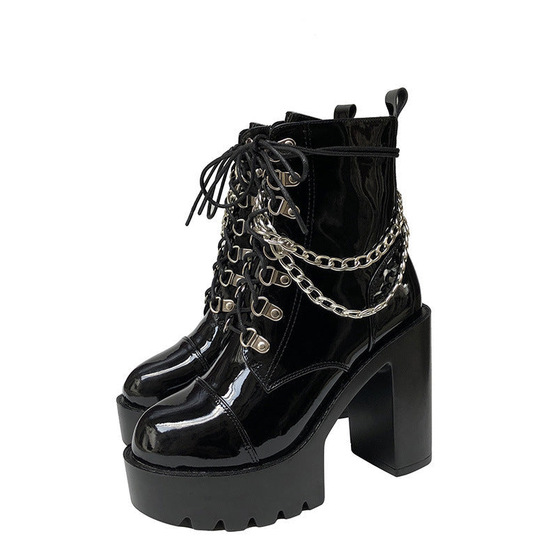 Patent leather platform block heel Martin boots