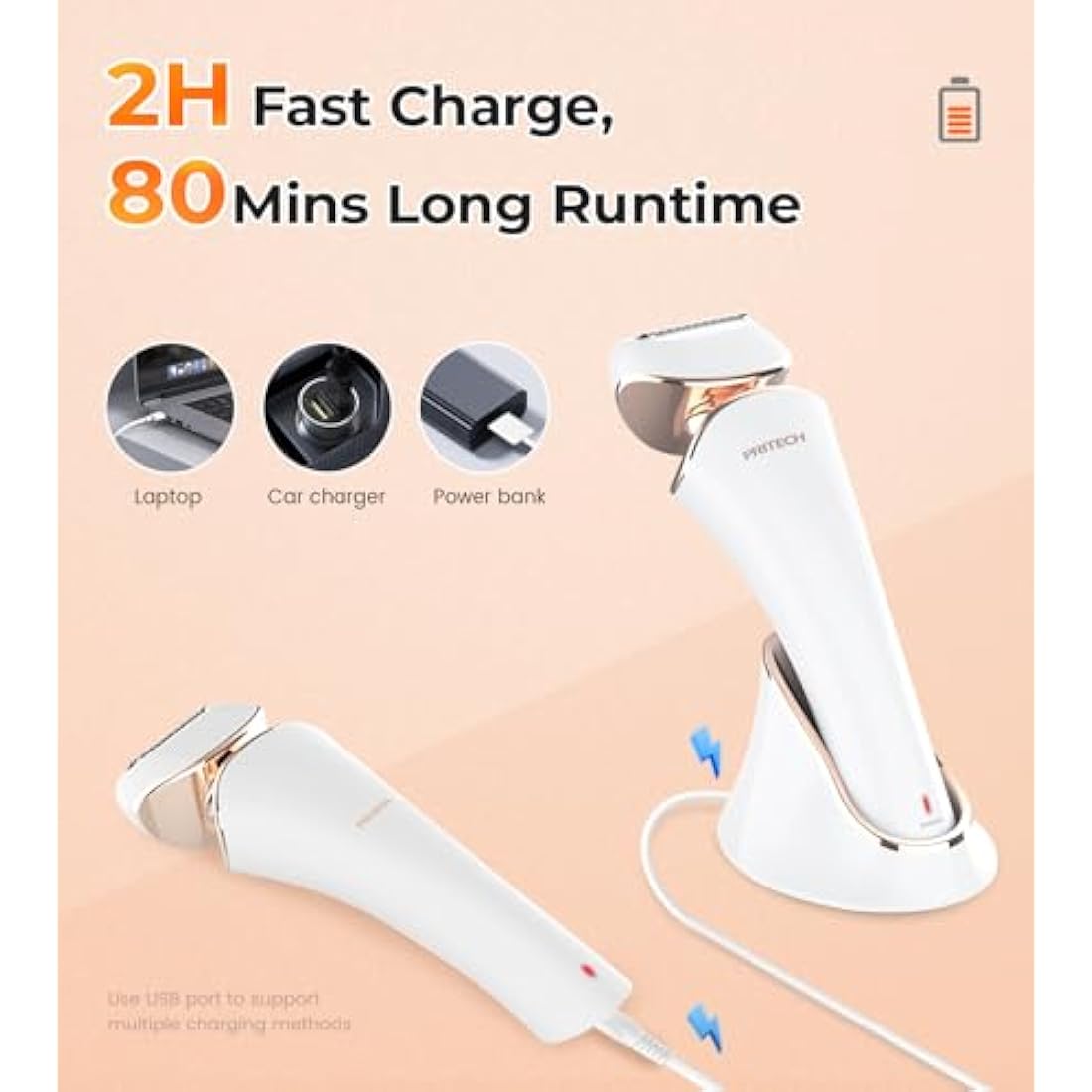 PRITECH Electric Shaver for Women - Cordless Ladies Shaver, Lady Razor for Legs, Arm, Underarms, Bikini, USB Rechargeable Wet & Dry Waterproof Razor for Woman