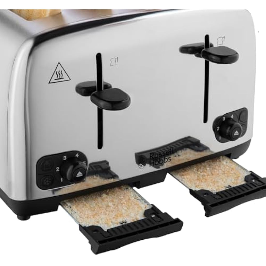 Russell Hobbs 4 Slice Toaster with Perfect Toast Technology for improved evenness (Wide slots, Lift & look feature, 6 Browning levels, Frozen & Cancel function, 1700W, Brushed & Stainless Steel) 24090