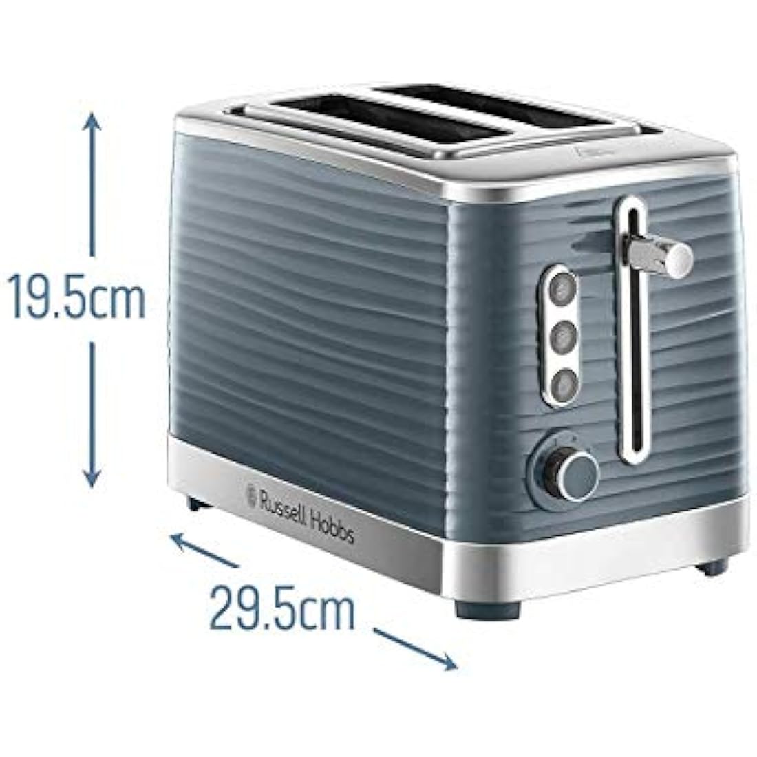 Russell Hobbs Inspire 2 Slice Toaster (Extra wide slots, High lift feature, 6 Browning levels, Frozen/Cancel/Reheat function with Blue LED illumination, 1050W, Grey textured high gloss) 24373