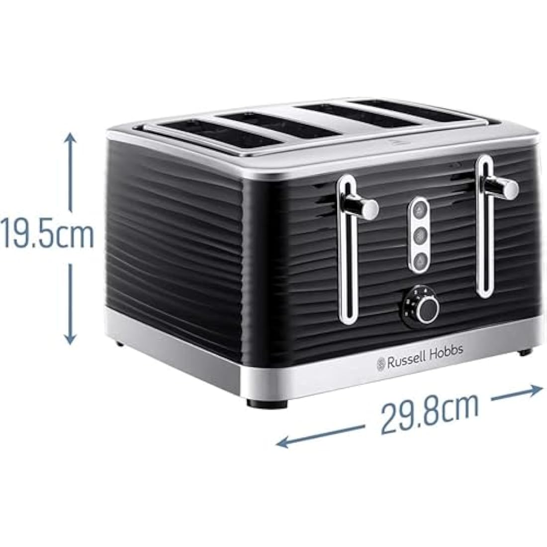Russell Hobbs Inspire 4 Slice Toaster (Extra wide slots, High lift feature, 6 Browning levels, Frozen/Cancel/Reheat function with Blue LED illumination, 1800W, Black textured high gloss) 24381