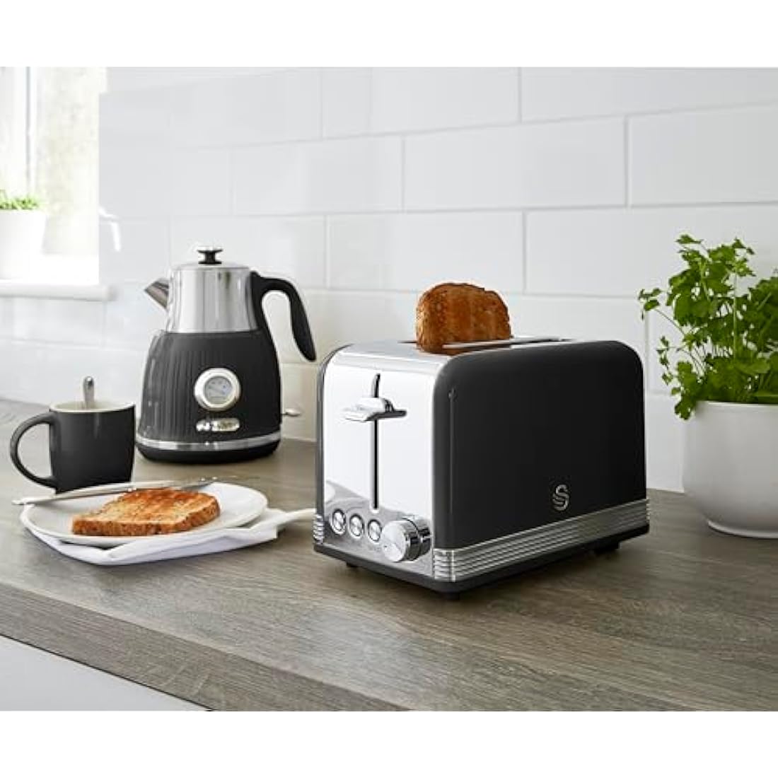 Swan ST19010BN Toaster, Stainless Steel, 815 W, Black
