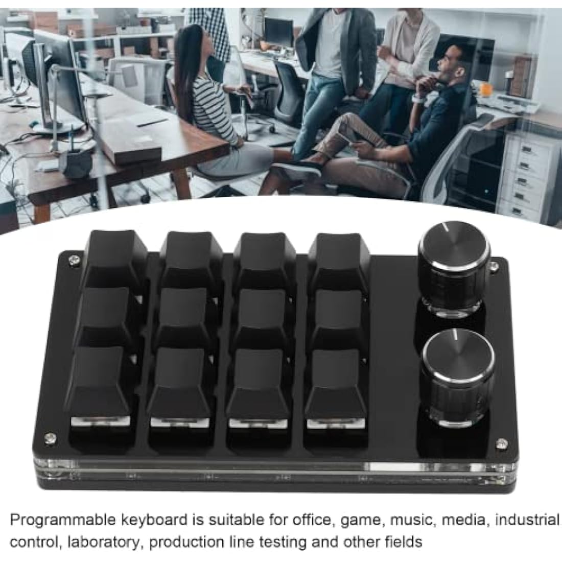 zalati Mechanical Keyboard, 12-Key USB Mini Programmable Keys No Drive Needed with Knob Design Easy to carry 2.97 x 5.14inch - Black